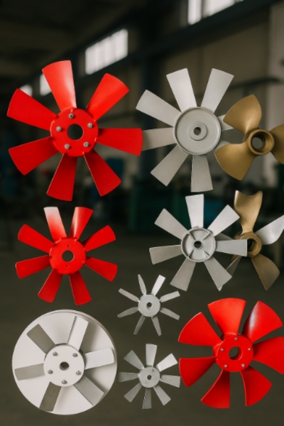 Fabricamos hélices axiales de 6 y 10 aspas, axiales fijos, agitadores de bronce SAE 65 y modelos de ángulo variable en PPG y PAG. Nuestros ventiladores axiales están diseñados para ofrecer un alto caudal de aire con eficiencia energética y mínima vibración.